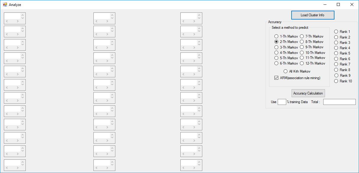 این برنامه پس از لود فایل ها، به مقداری که کاربر به عنوان ورودی در باکس مربوطه وارد کند از اول فایل به همان اندازه را به عنوان مجموعه ترین در نظر گرفته و باقی فایل را به عنوان مجموعه تست در نظر میگیرد. برای نمایش خروجی نیز صحت را با توجه به تعداد آبجکت های داخلی هر فایل بدست می آورد. تکست باکس ARM به این برنامه اضافه شده است.